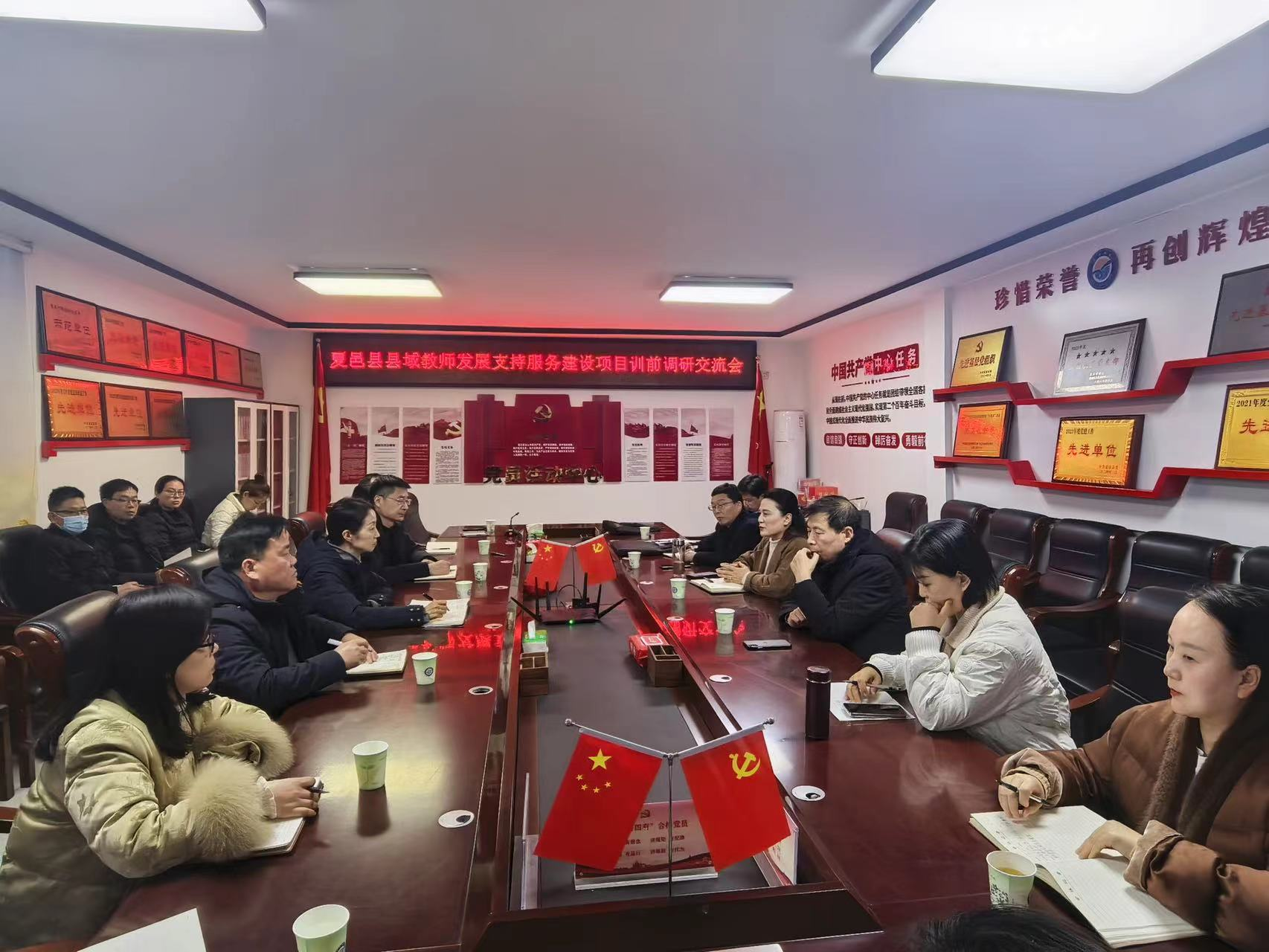 为继续做好“河南省义务教育团队薄弱环节改善暨素质提升工程”——夏邑县域教师发展支持服务体系建设项目培训工作,2月17日,项目组成员在公司经理、书记带领下与项目首席专家王启明教授一起赴夏邑项目县进行训前调研。夏邑县教体局副局长董敏、师训股负责人及参训公司及教师代表参加会议。副经理司彩玲主持调研座谈会。
