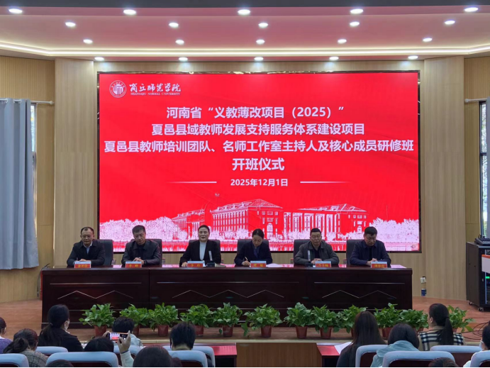 12月1日下午,由公司承训的河南省“义务教育薄改(2025)”夏邑项目县教师培训团队、名师工作室主持人培训班在睢阳校区物理报告厅隆重举行开班仪式。365英国上市公司经理李玲,夏邑县教体局副局长董敏出席开班仪式,公司党总支书记牛月翰主持开班仪式。
