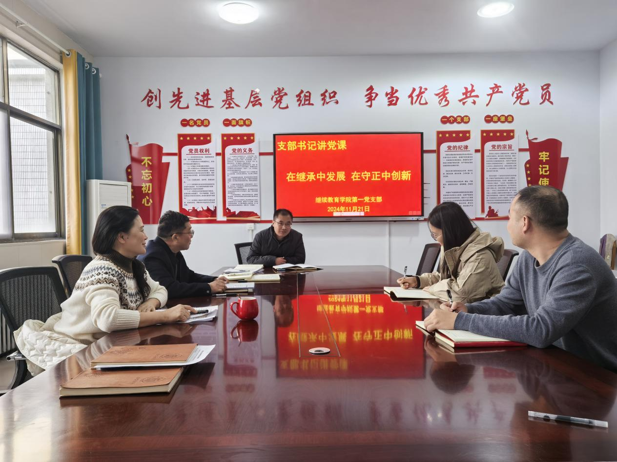 党支部书记张凯为全体党员宣讲了《在继承中发展在守正中创新》专题党课。对什么是守正创新?怎样才能做到守正创新等方面,为支部党员上了一堂内涵丰富,生动形象的党课。