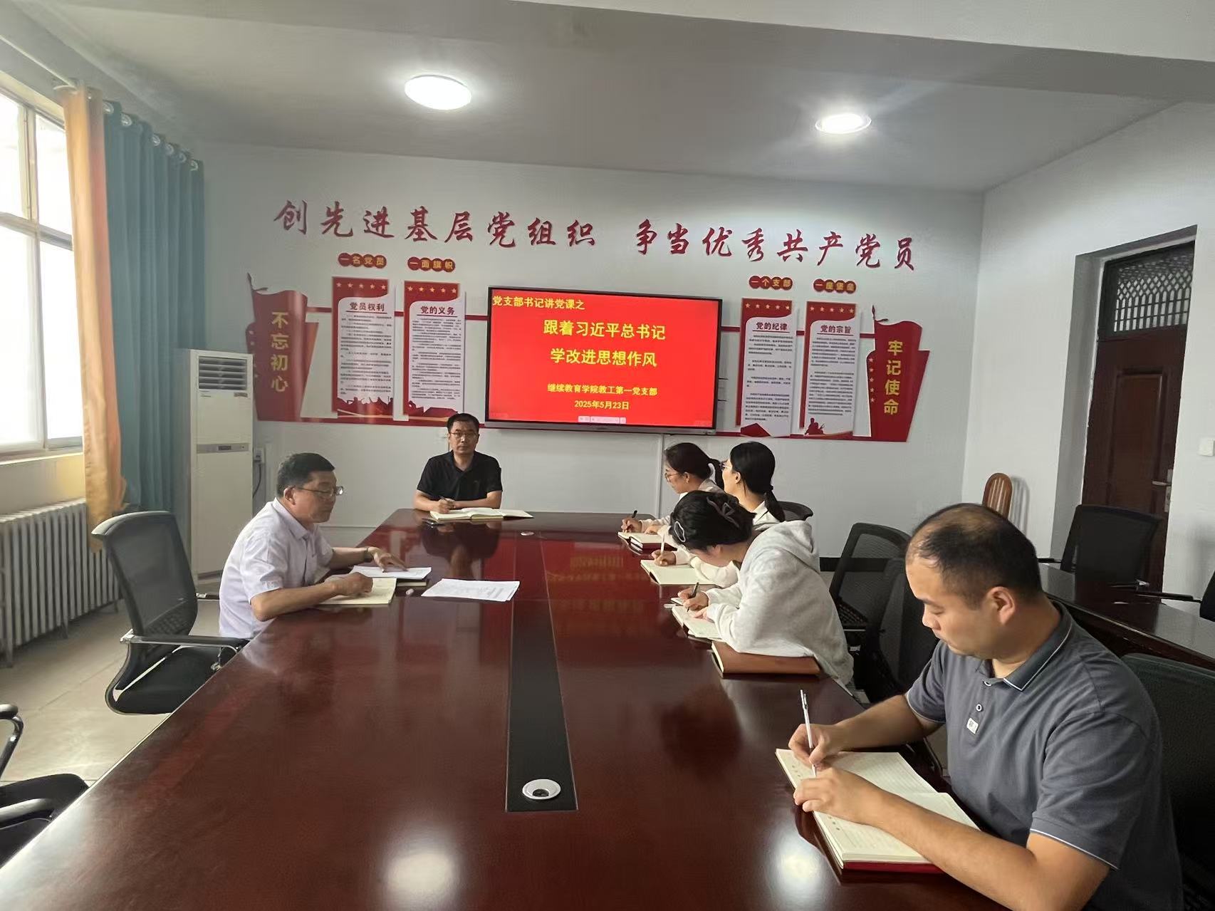 为深入贯彻中央八项规定精神学习教育走深走实,持续强化党员工作作风建设,5月23日,公司教工第一党支部举行“三会一课”学习活动,支部书记张凯以“跟着习近平总书记学改进思想作风”为题,为支部党员讲授专题党课。