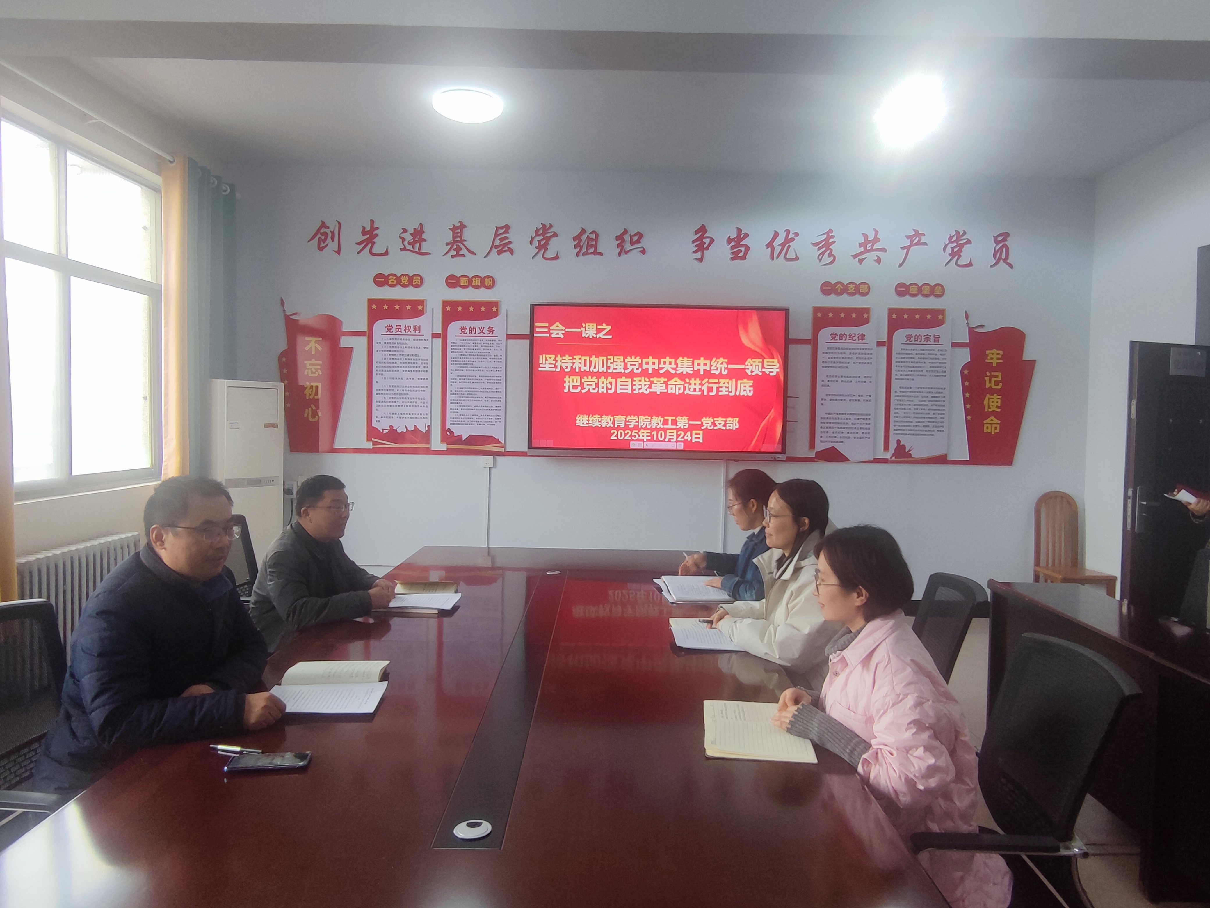 为深入学习贯彻习近平新时代中国特色社会主义思想,365英国上市公司教工第一支部于10月24日下午开展了“三会一课”专题学习,聚焦“坚持和加强党中央集中统一领导,把党的自我革命进行到底”主题进行了学习讨论。