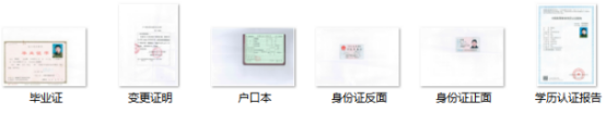 上述第一种情况需提供,五证的复印件和扫描件及身份证信息变更证明原件;第二种情况需提供,身份证和专科认证报告或专科的教育部电子注册备案表的复印件和扫描件。