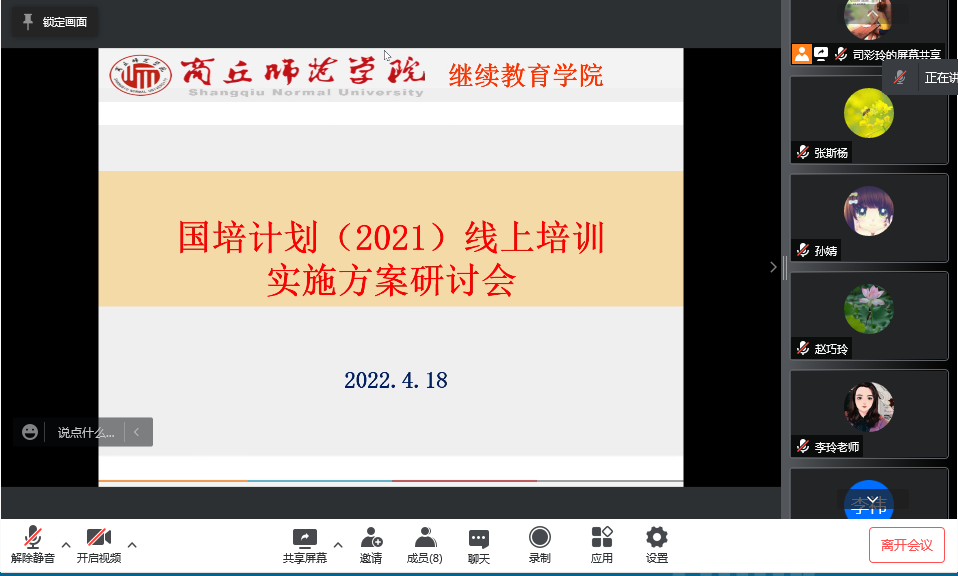 2022年4月18日,365英国上市公司通过腾讯会议组织召开“国培计划”线上培训实施方案研讨会。公司党总支书记牛月翰,经理李玲,副经理司彩玲、培训科张斯杨及各项目承担公司负责人和专家参加会议。