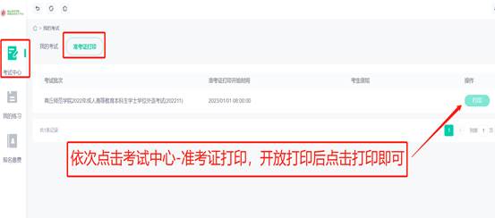 10.打印准考证:依次点击考试中心—准考证打印,点击打印即可。