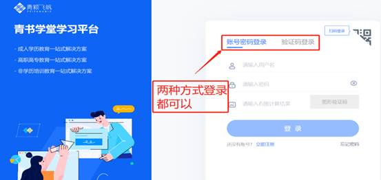 2.选择账号密码登录或者输入平台绑定的手机号用验证码登录都可以。